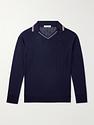 Striped dark blue long sleeve polo shirt from Beams Plus
